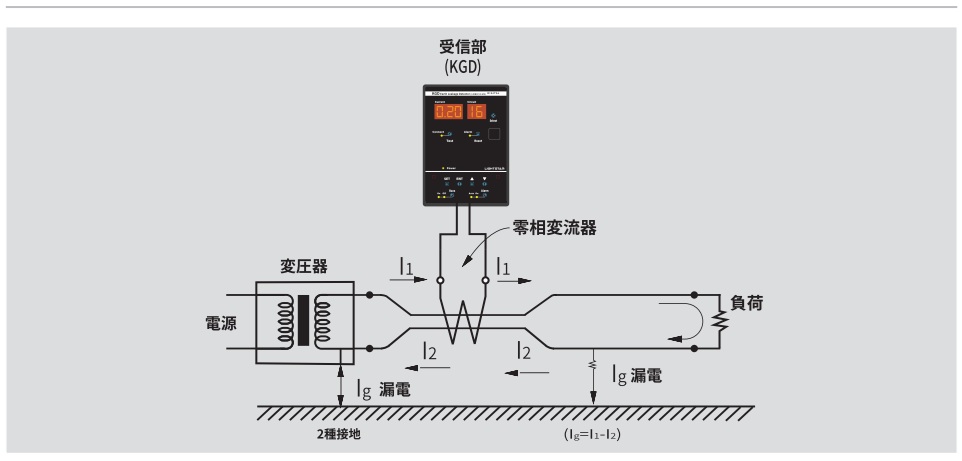 AC 600V未満の交流電源に電路の漏電事故を防止する目的として設置する機器であり、零相変流器(ZCT)から測定された電流を受けて